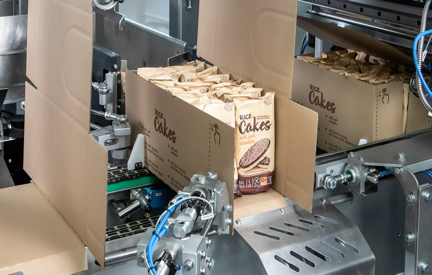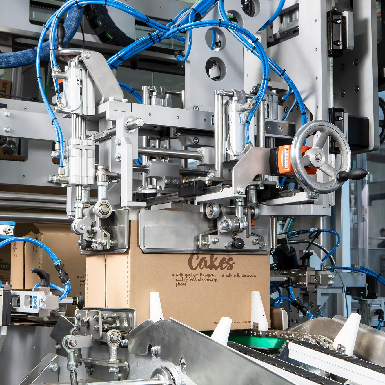 Efektywny system Case Packer typu wrap-around – automatyczna maszyna formująca i pakująca produkty bezpośrednio w kartony zbiorcze.
